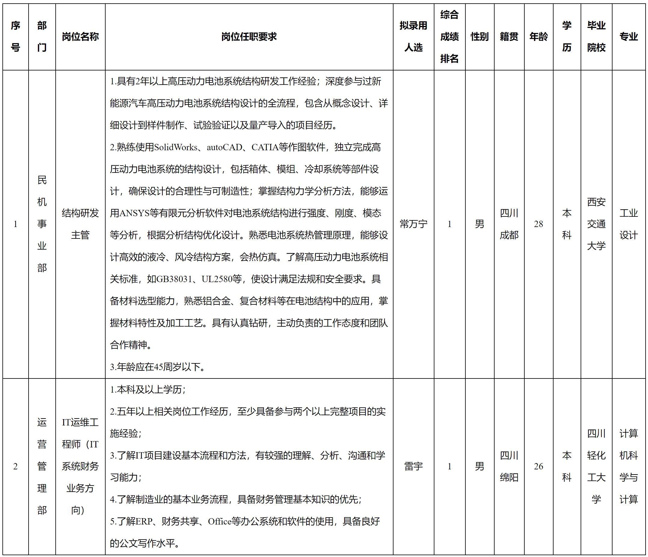 根據(jù)四川長虹電源股份有限公司發(fā)布的招聘公告及招聘相關(guān)規(guī)定,經(jīng)測試、考察、體檢等程序,擬錄用常萬寧、雷宇同志到我司工作,現(xiàn)予以公示,具體情況如下: