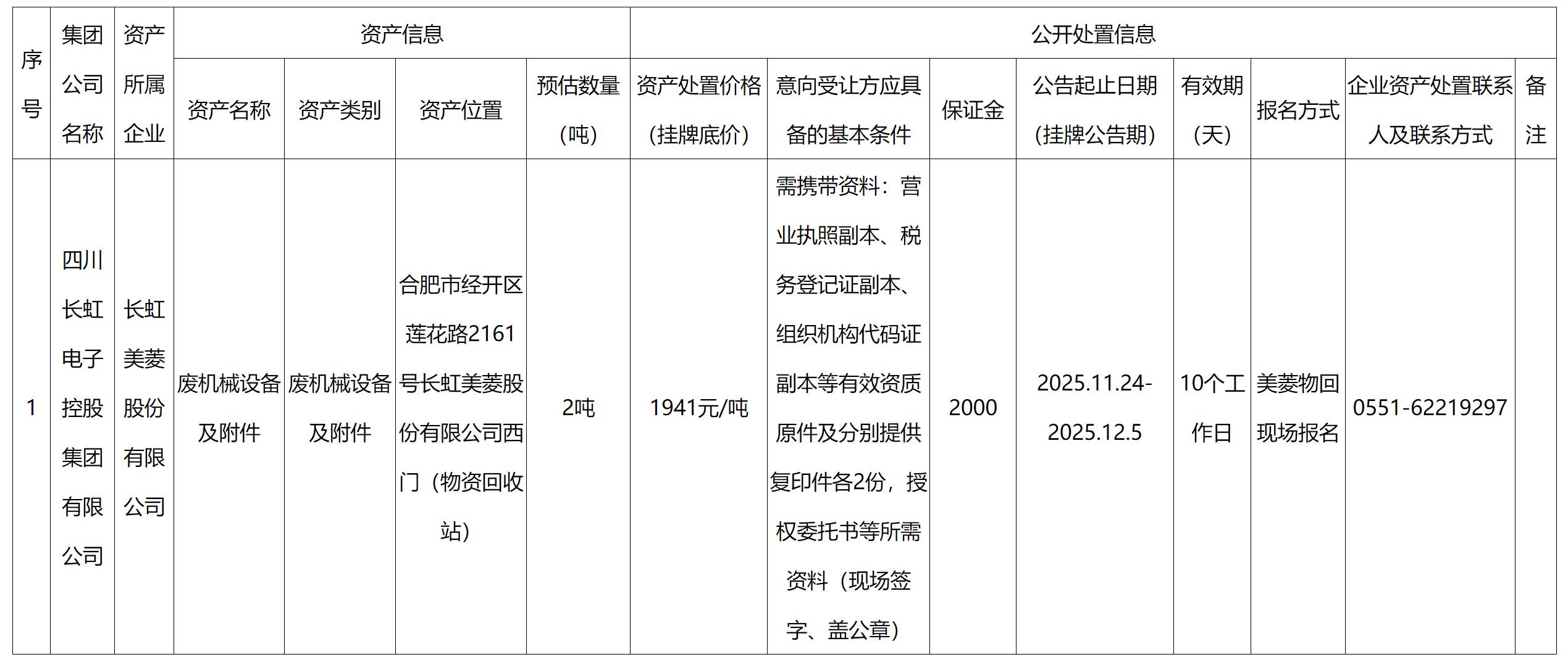 長虹美菱股份有限公司資產(chǎn)處置公告