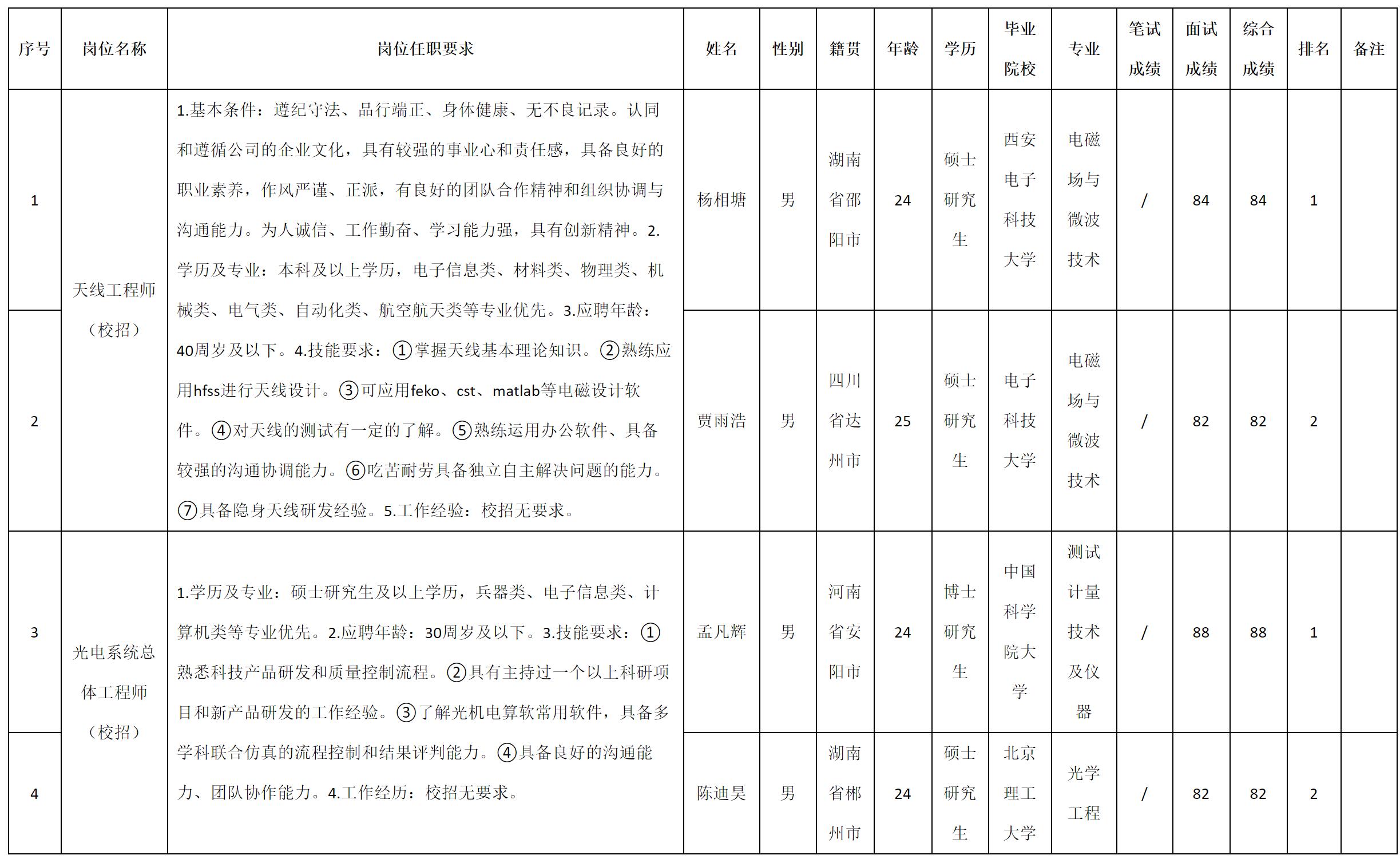 根據(jù)四川九洲電器集團(tuán)有限責(zé)任公司發(fā)布的招聘公告及招聘相關(guān)規(guī)定,現(xiàn)將測試成績予以公示。