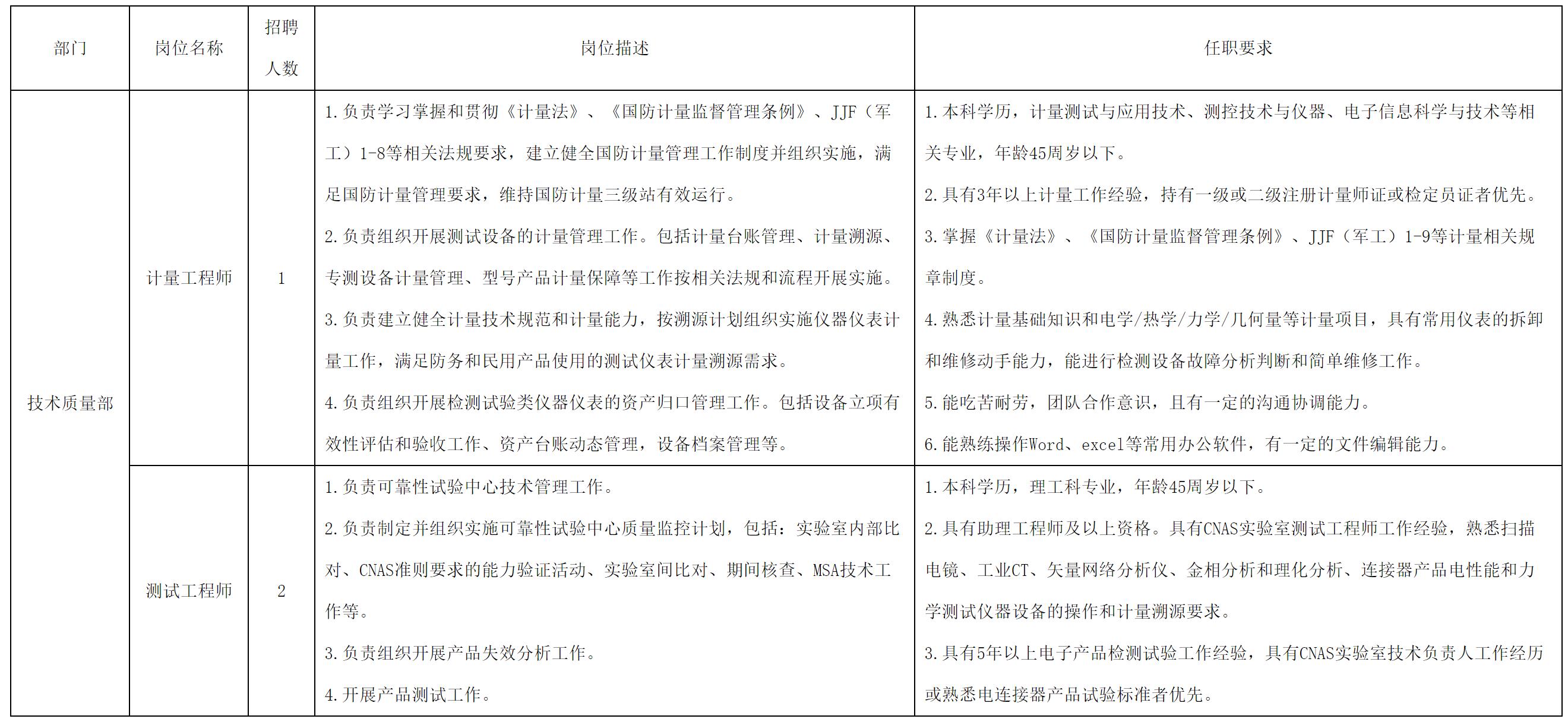 現(xiàn)因公司經(jīng)營(yíng)發(fā)展需要,現(xiàn)面向長(zhǎng)虹控股集團(tuán)內(nèi)、外部誠(chéng)聘計(jì)量工程師等崗位人員,具體崗位招聘信息公告如下: