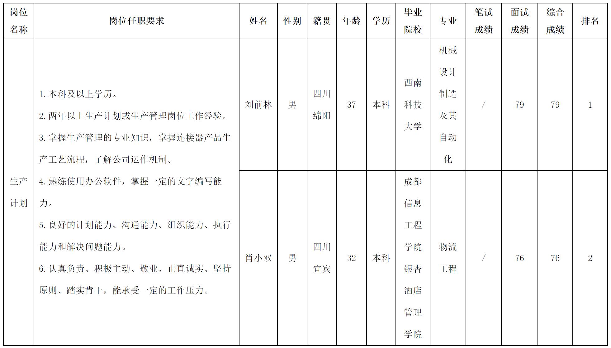根據(jù)四川華豐科技股份有限公司發(fā)布的招聘公告及招聘相關(guān)規(guī)定,現(xiàn)將測試成績予以公示。