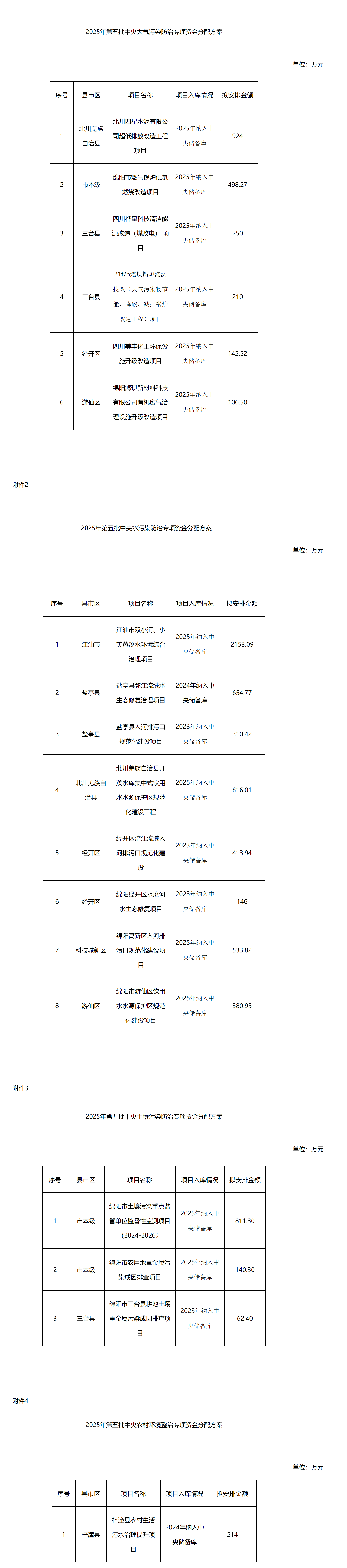 附件:1.2025年第五批中央大氣污染防治專項資金分配方案