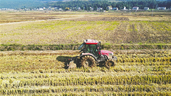 仙鶴鎮(zhèn)石龍村冬小麥播種現(xiàn)場。記者 周鈺 攝