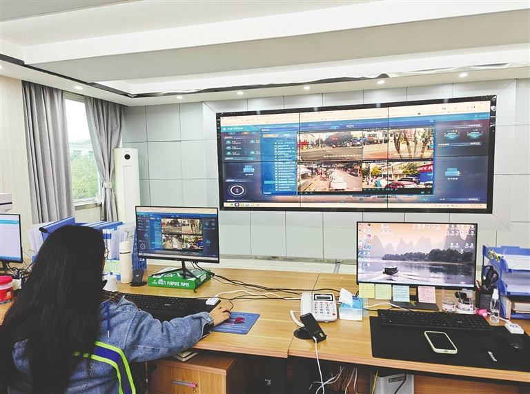 指揮中心內(nèi)的電子屏實時呈現(xiàn)重點區(qū)域動態(tài)信息?!∮浾?安崢 攝