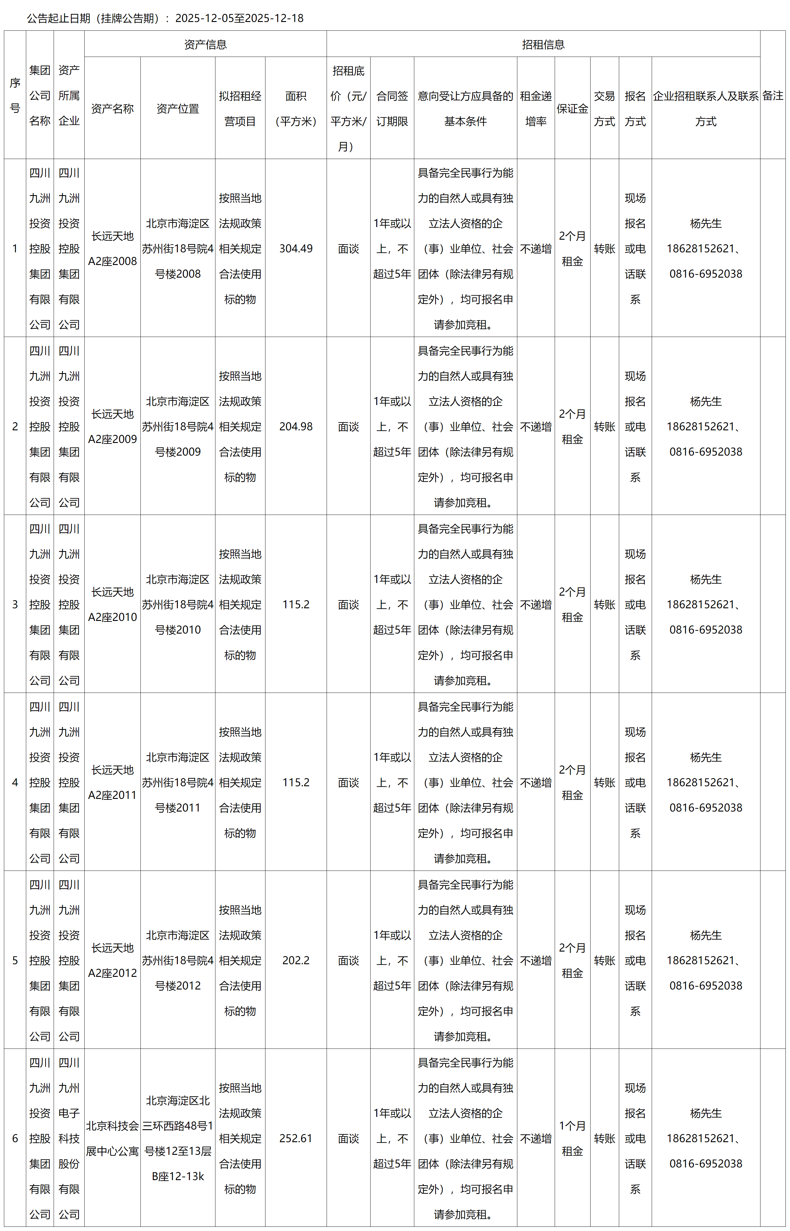 四川九洲千城商業(yè)管理有限公司北京項目部北京長遠天地A2座、北京科技會展中心房屋出租公告