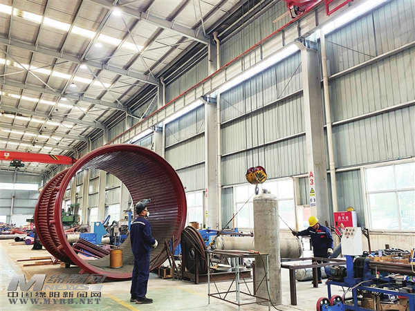 在陸亨能源科技公司生產車間,工人們正在加工產品。 馮蔡 攝