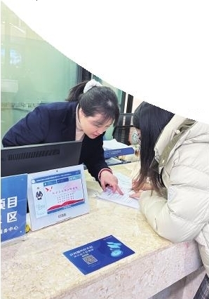 工程建設(shè)窗口工作人員指導經(jīng)辦人員填寫表冊。