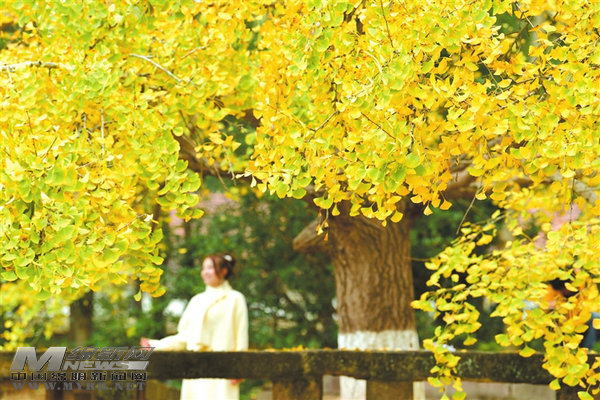 銀杏鋪展出金色畫(huà)卷,暈染出了一幅溫柔圖景。記者 王勇 攝