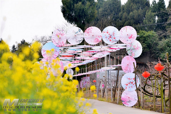 抗香村桃花節(jié)上花傘?! ∮浾?曾云 攝