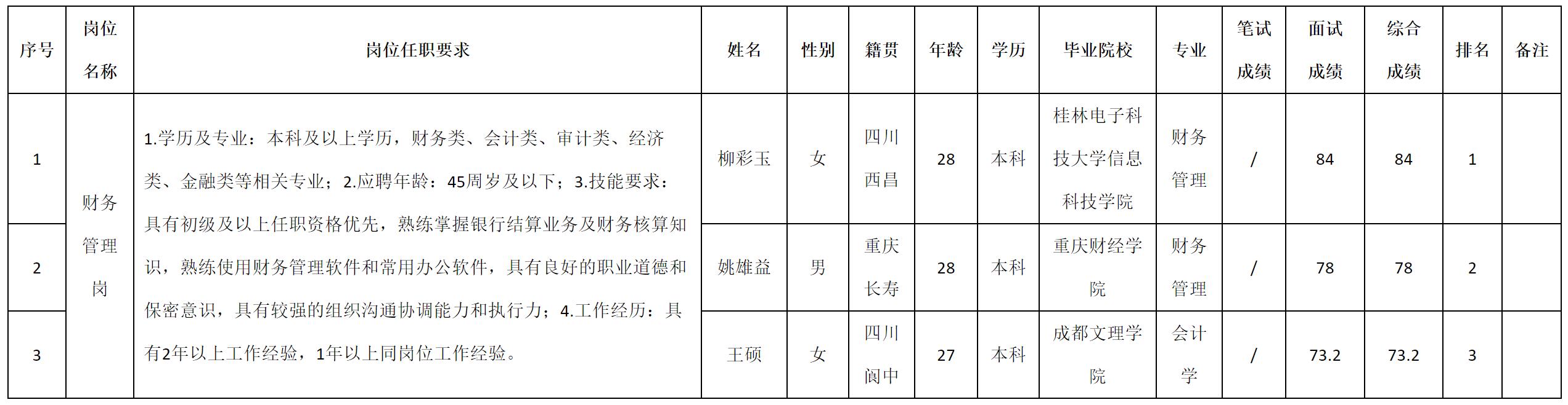 根據(jù)西昌千城置業(yè)有限公司發(fā)布的招聘公告及招聘相關(guān)規(guī)定,現(xiàn)將測試成績予以公示。
