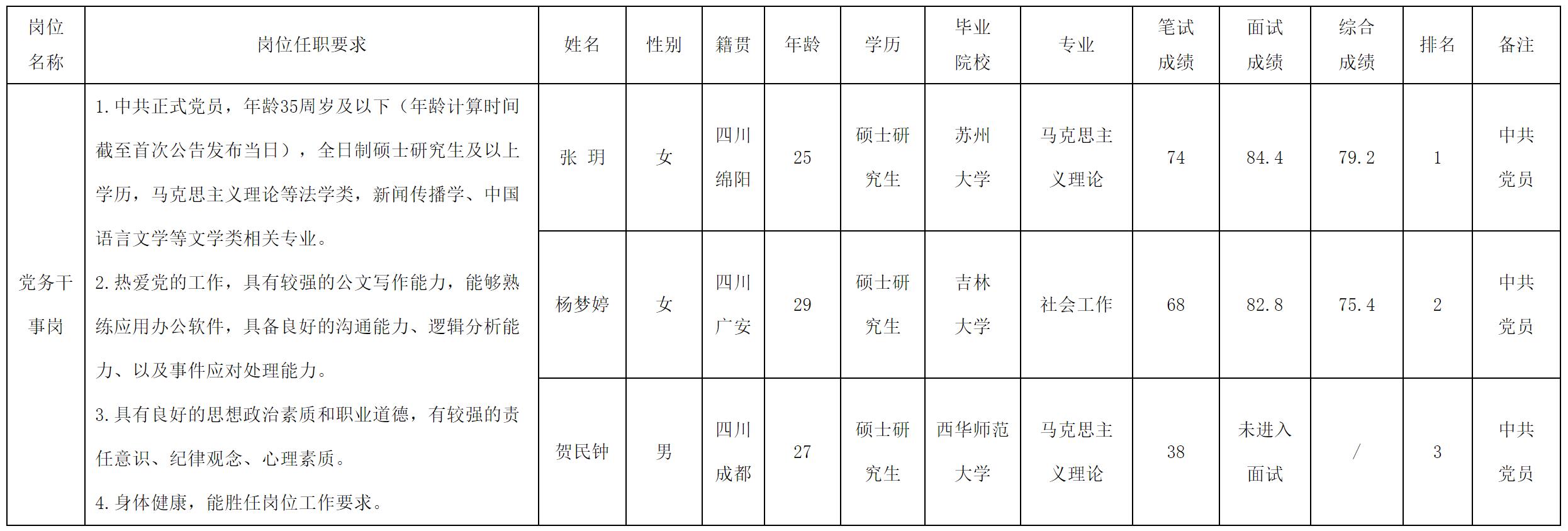 根據(jù)綿陽(yáng)市投資控股(集團(tuán))有限公司發(fā)布的招聘公告及招聘相關(guān)規(guī)定,經(jīng)筆試、面試等程序,現(xiàn)將筆試(面試)成績(jī)予以公示。