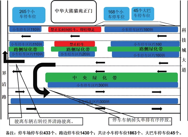 針對游玩結束后的車輛駛離問題,交警部門也給出了明確的分流路線。路線一:沿熊貓大道行駛至界青路路口,左轉可前往安州區(qū),右轉沿綿安路返回城區(qū);路線二:行駛至熊貓大道與科技城大道交會處,左轉前往城區(qū)方向,右轉則可抵達永興方向。