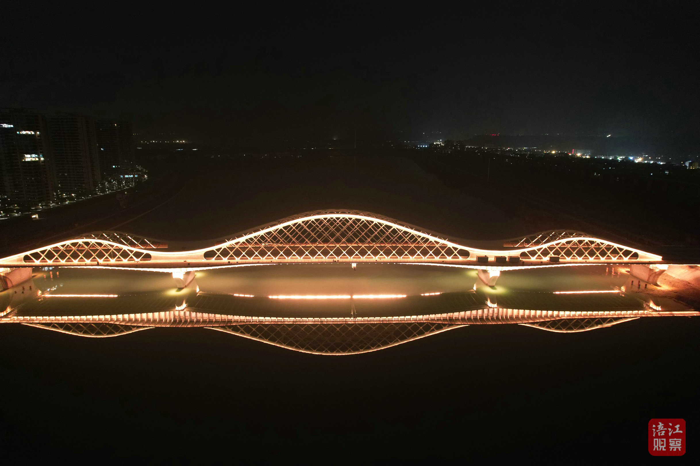 青石路涪江大橋橫跨涪江,東接游仙區(qū)石馬鎮(zhèn)科學城大道,西連涪城區(qū)青義鎮(zhèn)綿江路,全長約1.4公里。主橋采用梁拱組合鋼結(jié)構(gòu)體系,總長380米,最大寬度達52米,是目前國內(nèi)最大網(wǎng)狀剛性吊桿三跨拱梁組合體系橋,也是采用頂推施工工藝的最大變截面鋼箱梁拱橋。其造型設計靈感源于“探索未知、勇攀高峰”的科技精神,寓意綿陽作為中國科技城不斷開拓創(chuàng)新的城市氣質(zhì)。