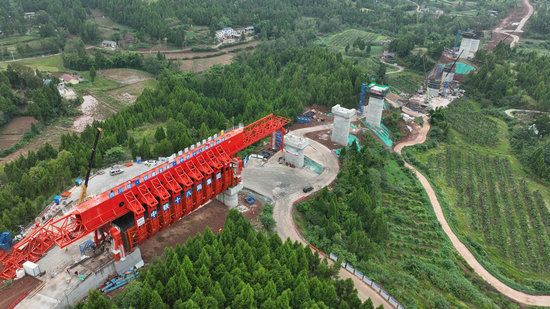 亭子口灌區(qū)一期工程老吳壩渡槽建設現(xiàn)場。