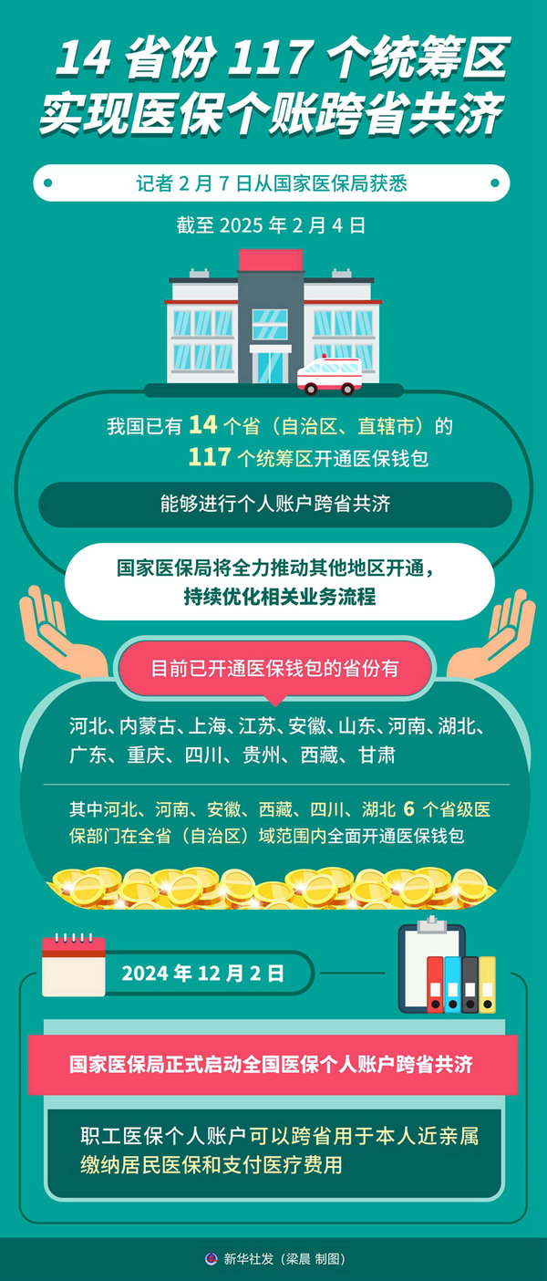 新華社北京2月7日電(記者徐鵬航、溫競?cè)A)記者7日從國家醫(yī)保局獲悉,截至2025年2月4日,我國已有14個?。ㄗ灾螀^(qū)、直轄市)的117個統(tǒng)籌區(qū)開通醫(yī)保錢包,能夠進行個人賬戶跨省共濟。國家醫(yī)保局將全力推動其他地區(qū)開通,持續(xù)優(yōu)化相關(guān)業(yè)務(wù)流程。