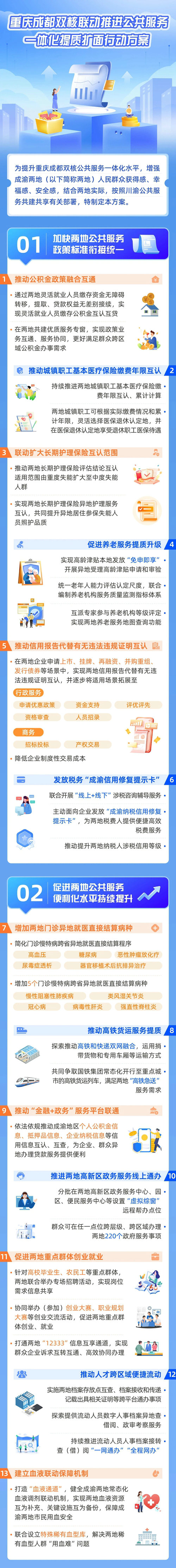 為提升重慶成都雙核公共服務(wù)一體化水平,增強成渝兩地人民群眾的獲得感、幸福感、安全感,近日,《重慶成都雙核聯(lián)動推進公共服務(wù)一體化提質(zhì)擴面行動方案》(以下簡稱《行動方案》)正式印發(fā)。