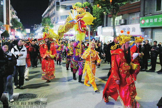 夜幕下,平武風(fēng)情大型巡游隆重上演,鑼鼓隊(duì)、曹蓋隊(duì)、民族隊(duì)、牦牛隊(duì)、熒光舞獅隊(duì)、舞龍隊(duì)等組成的巡游隊(duì)伍載歌載舞,市民游客自發(fā)加入,形成萬(wàn)人共慶的盛景。“太熱鬧了,這才叫過(guò)年!”來(lái)自成都的游客周先生高興地說(shuō),活動(dòng)非常豐富,在感受本地民俗文化中過(guò)年,很有意義。