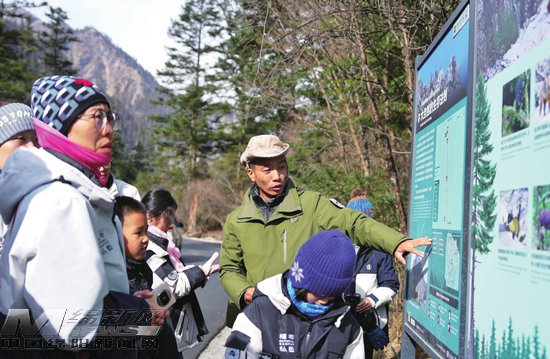 王朗片區(qū)還推出“給原始森林做體檢”主題線(xiàn)路,訪(fǎng)客們可通過(guò)這條線(xiàn)路進(jìn)行研學(xué)探究。“聽(tīng)解說(shuō)加上學(xué)習(xí)標(biāo)識(shí)牌上的科普知識(shí),即使是第一次來(lái)這里,也能很好地了解動(dòng)植物知識(shí)。”第一次來(lái)到這里的成都游客林女士說(shuō),王朗既能玩雪,又能學(xué)習(xí)生態(tài)科普知識(shí),孩子特別感興趣。