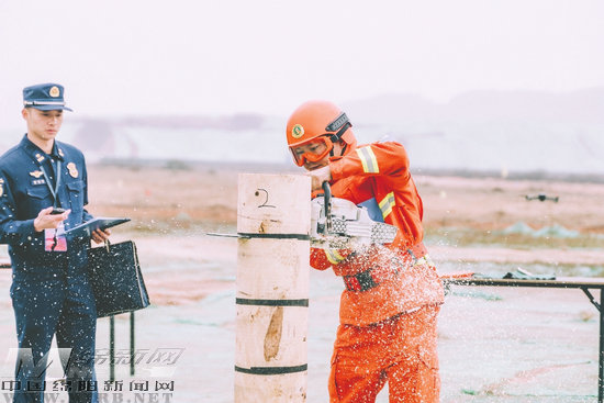 當(dāng)天上午,隨著口令響起,活動(dòng)準(zhǔn)時(shí)開(kāi)始。在考驗(yàn)隊(duì)員們體能和耐力的3公里負(fù)重越野比賽中,參賽人員向著終點(diǎn)全力沖刺;在油鋸斷木項(xiàng)目較量中,隊(duì)員們手持油鋸,作業(yè)“穩(wěn)”“準(zhǔn)”“快”;在以水滅火項(xiàng)目科目中,大家分工明確,精準(zhǔn)地將水柱射向肆虐的火焰……