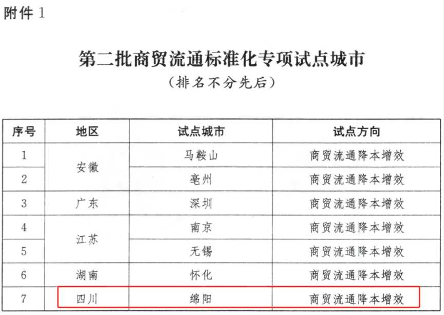 確定了7個商貿(mào)流通標(biāo)準(zhǔn)化專項試點城市