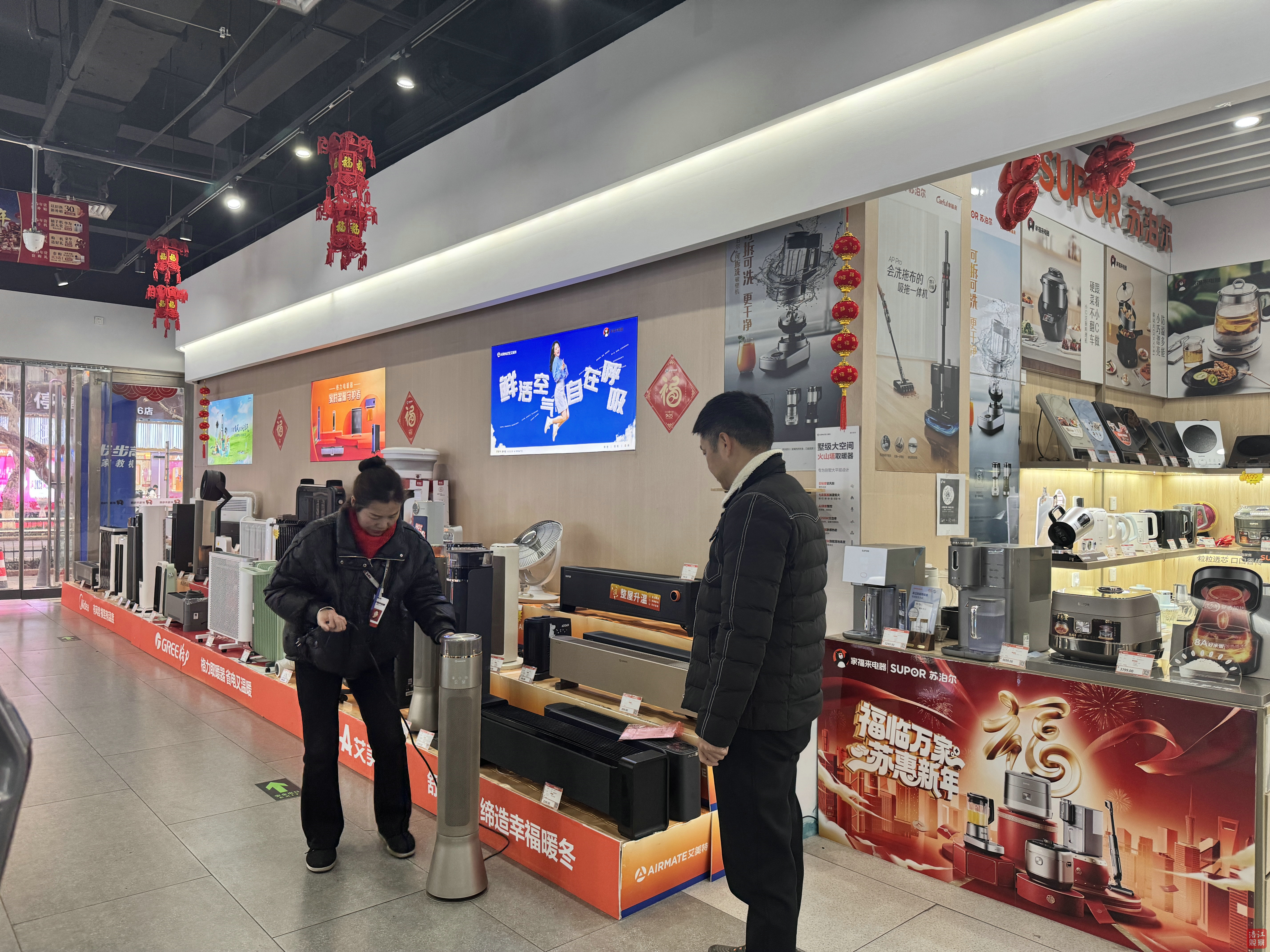不僅有豐富的鬧元宵活動(dòng),門店也是抓住“年尾巴”,推出優(yōu)惠福利,借“元宵經(jīng)濟(jì)”讓消費(fèi)市場(chǎng)持續(xù)升溫。“購(gòu)手機(jī)、家電享政企雙補(bǔ),最高達(dá)35%;購(gòu)買電視、冰箱、洗衣機(jī)、冰柜、抽油煙機(jī)、熱水器等送一年延長(zhǎng)保修。”王紅介紹,同時(shí),門店針對(duì)套購(gòu)也有買贈(zèng)的活動(dòng)。