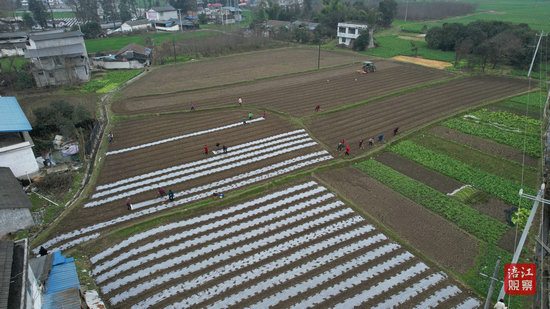 近日,記者走進北川羌族自治縣永昌鎮(zhèn)群聯(lián)村,只見機械快速地對土地進行翻耕,村民們穿梭在田間地頭,或揮舞鋤頭進行土地細碎整理,或三人一組對整理好的土地覆膜、施肥,呈現(xiàn)出一派繁忙景象。
