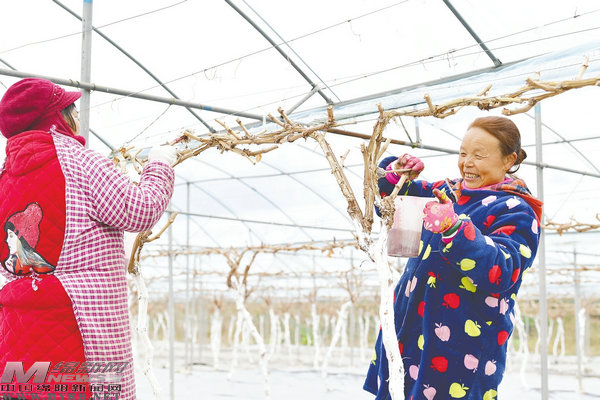 2月7日,在涪城區(qū)歐公大道兩側(cè)的連片果園里,處處是農(nóng)戶們忙碌的身影,有的在大棚內(nèi)給葡萄枝干抹藥防蟲害,有的收割青菜、平整土地,目之所及,一派熱火朝天的勞作景象。(記者 王勇 攝)