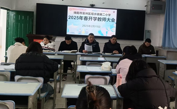 2月15日,安州區(qū)塔水鎮(zhèn)第二小學(xué)召開了以“實(shí)干啟新程 新年新氣象”為主題的2025年新學(xué)期第一次全體教師會(huì)議。本次會(huì)議旨在為新學(xué)年的教育教學(xué)工作指明方向,凝聚共識(shí),激勵(lì)全體教師以飽滿的熱情和務(wù)實(shí)的態(tài)度迎接新的挑戰(zhàn)。
