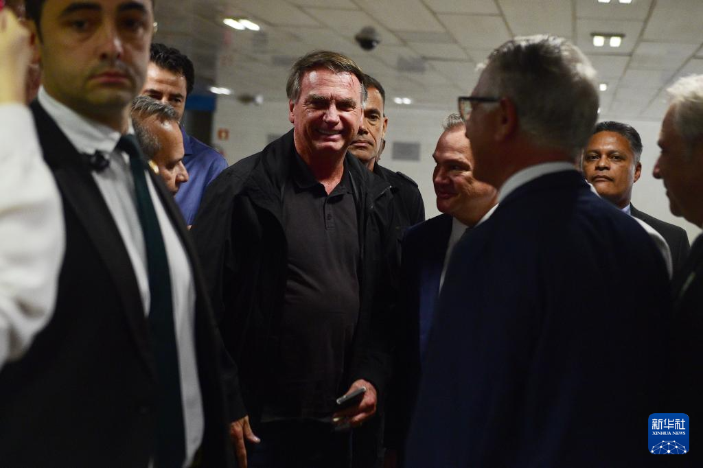 2月18日,在巴西首都巴西利亞,巴西前總統(tǒng)雅伊爾·博索納羅(中)現(xiàn)身國會大廈。