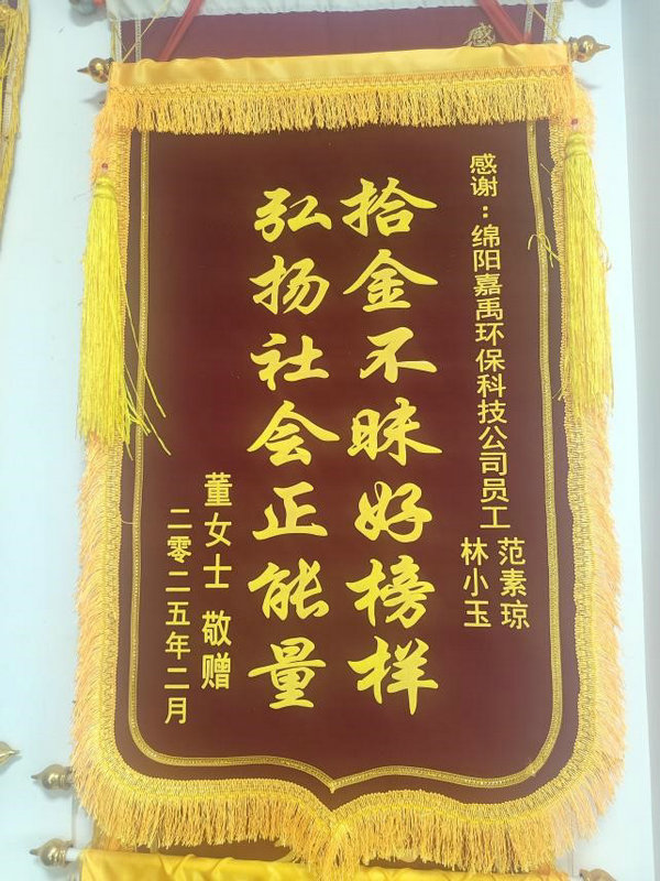 在嘉禹環(huán)保,表達(dá)感謝的錦旗,掛滿(mǎn)了一墻,正能量的好人好事,接連在嘉禹環(huán)保涌現(xiàn)。