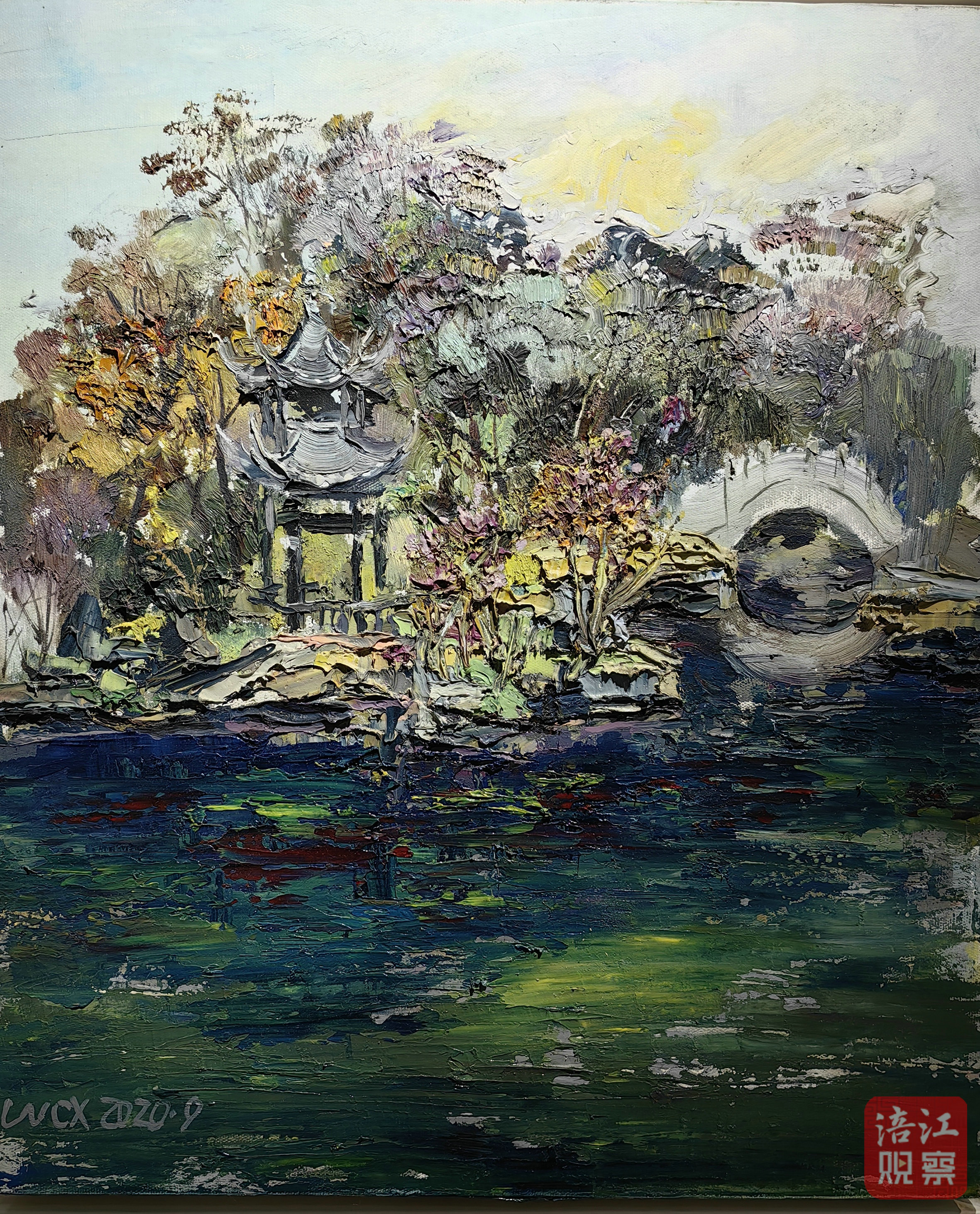 席波的作品筆觸之間蘊(yùn)含著對(duì)生活的深刻洞察與思考,他的油畫(huà)作品用大膽而富有張力的色彩構(gòu)建出充滿力量的畫(huà)面,他的鋼筆畫(huà)和書(shū)寫(xiě)作品以全新的視覺(jué)認(rèn)知表現(xiàn)新羌鄉(xiāng)、新家園,展現(xiàn)自然與人文的和諧共生。魏春霞的作品則以細(xì)膩的情感和獨(dú)特的女性視角,描繪生活中的點(diǎn)滴美好。