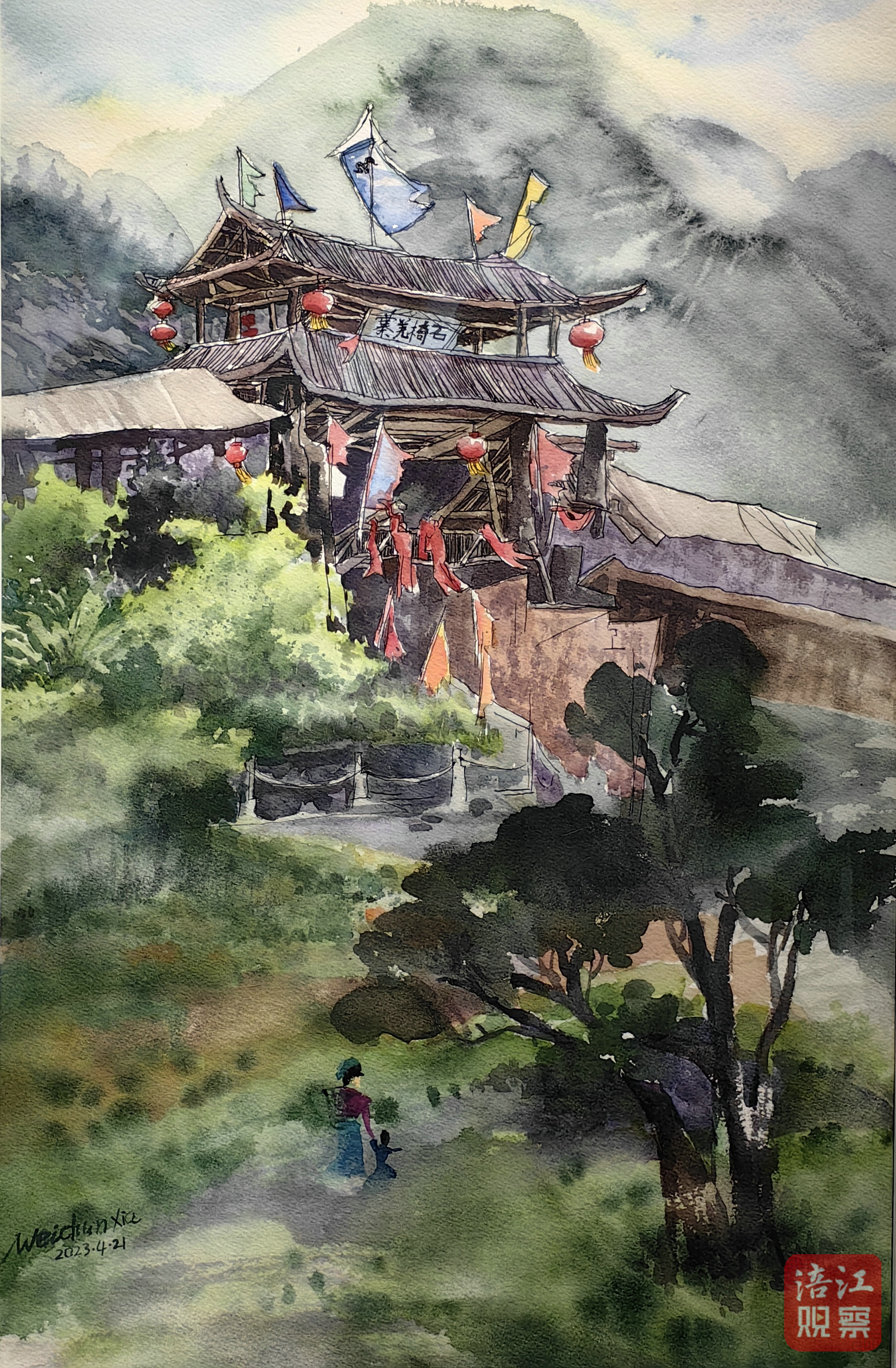 還有部分作品呈現(xiàn)的是新時(shí)代鄉(xiāng)村的春色、晨景、充滿煙火味的農(nóng)家小院,還有北川羌鄉(xiāng)的人文風(fēng)情、風(fēng)貌,每一個(gè)畫(huà)面都吸引了大家的駐足。