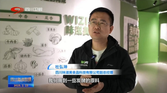 四川味滋美食品科技有限公司副總經(jīng)理 杜弘坤:我們用到一些發(fā)酵的原料,有各種各樣的豆瓣醬、泡椒、泡酸菜,在我們園區(qū)里恰恰有大量類似的企業(yè),可以給我們提供源源不斷地支持。