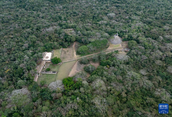 這是2月21日在墨西哥尤卡坦州拍攝的拉布納遺址(無(wú)人機(jī)照片)。