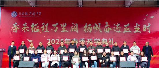 綿陽新聞網(wǎng)訊 近日,三臺縣蘆溪中學、蘆溪二中全體師生齊聚一堂,隆重舉行了以“春來征程萬里闊,揚帆奮進正當時”為主題的2025年春季學期開學典禮。