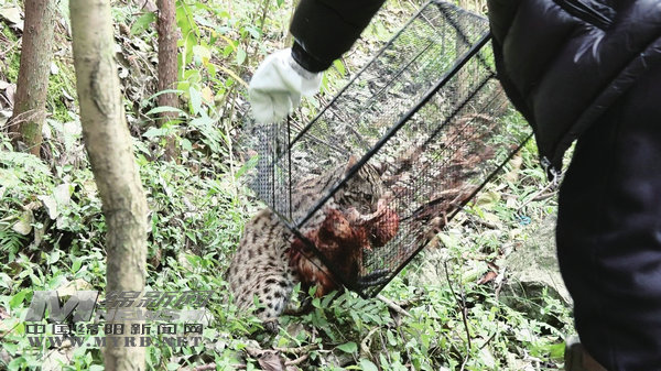 安州野生動(dòng)物保護(hù)站工作人員將豹貓放歸自然
