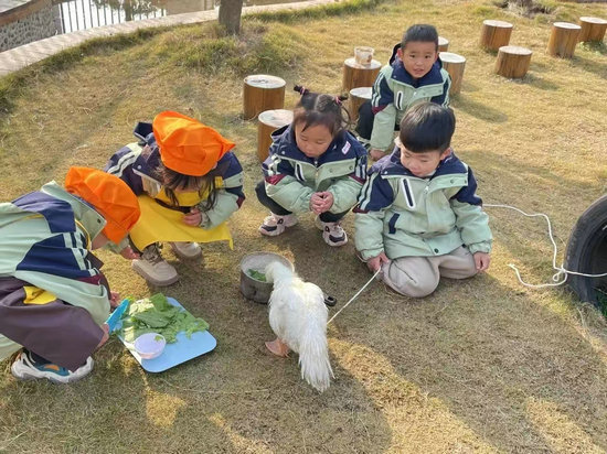 本著環(huán)境創(chuàng)設(shè)目標(biāo)與教育目標(biāo)一致的整體目標(biāo),采取“統(tǒng)籌規(guī)劃、分步實(shí)施、重點(diǎn)打造、整體推進(jìn)”的原則,逐漸形成集學(xué)習(xí)、游戲、探索于一體的種植園、沙水樂(lè)、樹屋、民間藝術(shù)館、生活館扎染坊等環(huán)境設(shè)施。孩子們?cè)诔錆M童趣的小山坡、小山洞里體驗(yàn)與泥土的親密接觸;在曲折的水渠里玩水、網(wǎng)魚,與沙、石、水、木互動(dòng),感知靈動(dòng)的自然生活環(huán)境;在扎染房、編織館、涂鴉館中享受藝術(shù)活動(dòng)的樂(lè)趣;在飼養(yǎng)區(qū)養(yǎng)小兔子、小鴨子、蘆丁雞,體驗(yàn)農(nóng)耕生活,感受收獲和成長(zhǎng)。生成了多個(gè)班本課程,真正做到尊重兒童內(nèi)在,自然的創(chuàng)設(shè)環(huán)境、建構(gòu)課程,形成“順木之天、以致其性”的課程觀。
