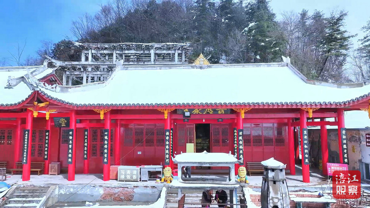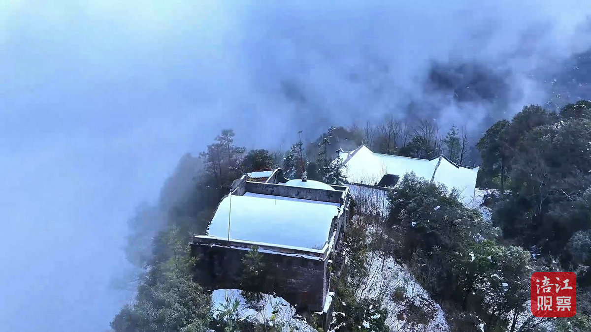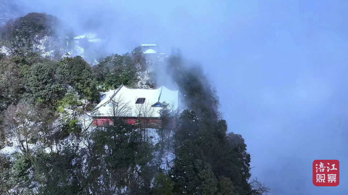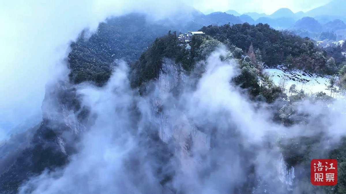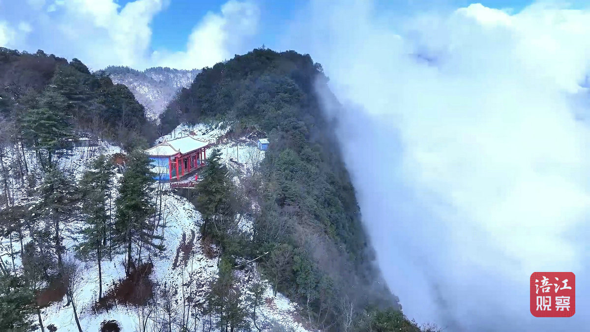 江油觀霧山一夜變仙境,云霧與白雪共舞