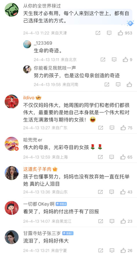 《“唐氏”川劇變臉女孩和她的蛻變》講述“唐氏”女孩殷秋華從零開始學川劇變臉,在藝術(shù)上破繭成蝶的故事,生動詮釋了個體的頑強拼搏與社會大愛的溫暖力量,將中國傳統(tǒng)文化和“唐氏寶寶”之間光芒流淌、力量奔赴,呈現(xiàn)給全世界。網(wǎng)友們?yōu)橐笄锶A的故事感動之余不禁感嘆:“殘障不是障礙,熱愛才是舞臺”“真正的美,來自內(nèi)心的堅韌”。