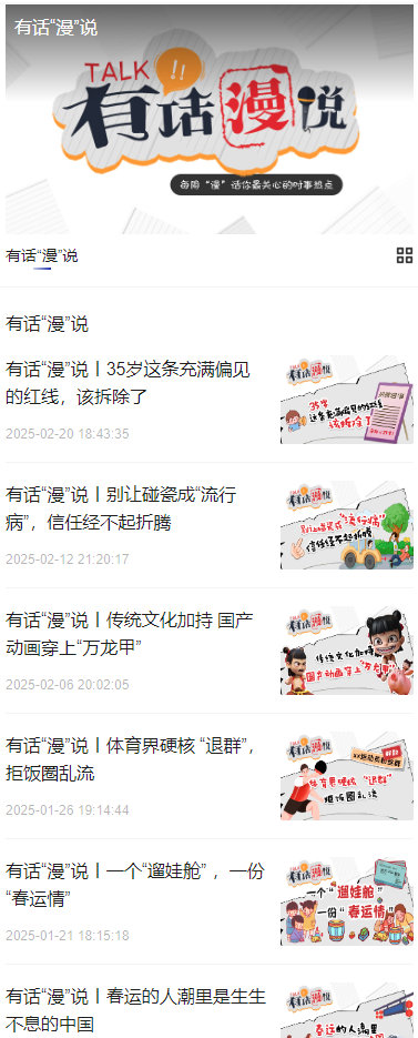 《有話“漫”說》時事短評類專欄,以動畫短評的內(nèi)容形式,探討社會熱點話題、傳遞正能量。巧妙地將社會評論類節(jié)目以漫畫的呈現(xiàn)形態(tài),降低了嚴肅話題的接受門檻,增強了內(nèi)容的傳播力與感染力。自專欄上線以來,因獨特的視角、深刻的評論和趣味化的呈現(xiàn)方式,贏得了廣泛好評。