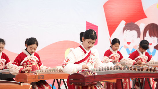 隨著悠揚(yáng)的古箏曲《小美滿(mǎn)》《市集》拉開(kāi)了開(kāi)學(xué)典禮的序幕。緊接著,在莊嚴(yán)的國(guó)歌聲中,那一抹鮮艷的紅色緩緩升起,全體參會(huì)人員雙眼凝視國(guó)旗,同學(xué)們整齊的隊(duì)禮彰顯著新時(shí)代少年兒童風(fēng)采。
