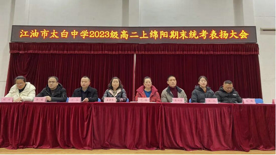 綿陽新聞網(wǎng)訊 為了表揚先進,樹立榜樣,2月24日,江油市太白中學高2023級在體育館舉行了以“鯤鵬振翅凌萬里 騏驥奮蹄啟新程”為主題的高二上期綿陽期末考試成績表揚大會。本次會議由年級主任汪麗主持,該校黨委委員、副校長何璠老師,該校教學督導師、年級分管王孝珍老師,教導處主任、年級主管冷燦老師及2023級全體師生齊聚一堂,共赴這場青春與榮耀的盛會。