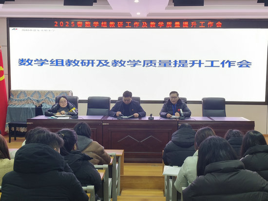 會議由數(shù)學(xué)組教研組長主持,全體數(shù)學(xué)教師齊聚一堂,該校校長與分管教學(xué)的副校長親臨會場并作講話。