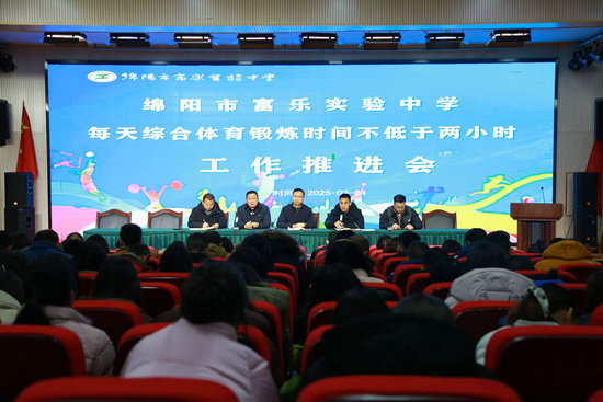 綿陽新聞網(wǎng)訊 為了貫徹落實省教育廳印發(fā)的《關(guān)于確保中小學(xué)生每天綜合體育活動時間不低于兩小時的通知》,進一步促進學(xué)生健康成長與全面發(fā)展,2月24日上午,綿陽市富樂中學(xué)在沈家壩校區(qū)學(xué)術(shù)廳召開了以“聚焦藝體 助力成長”為主題的每天綜合體育鍛煉時間不低于兩小時工作推進會暨2025年春季藝體工作會。