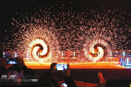 非遺打鐵花表演更是將現(xiàn)場(chǎng)氣氛推向頂點(diǎn)。只見(jiàn)幾位技藝高超的匠人手持火壺和鐵棒,演繹了一場(chǎng)驚心動(dòng)魄的打鐵花表演。鐵水飛濺,火花四散,猶如滿天星辰,點(diǎn)亮了整個(gè)夜空。緊接著,兩只絢麗的“飛天鳳凰”在舞臺(tái)上騰空而起,展翅翱翔,為觀眾帶來(lái)一場(chǎng)震撼心靈的視覺(jué)盛宴。