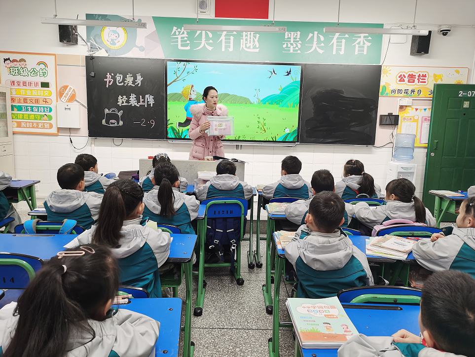 為了促進(jìn)學(xué)生健康成長,養(yǎng)成良好的收納整理意識(shí)。近日,綿陽市成綿路小學(xué)教育集團(tuán)開展了以“給書包減負(fù),為健康護(hù)航”為主題的2025年春書包減負(fù)行動(dòng)。
