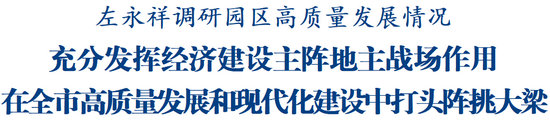 調(diào)研過程中,左永祥聽取了高新區(qū)(科技城直管區(qū))、經(jīng)開區(qū)、科技城新區(qū)加快推動園區(qū)高質(zhì)量發(fā)展情況匯報。他強調(diào),今年是綿陽加快建成省域經(jīng)濟副中心三年行動開局之年,全市園區(qū)要錨定“走在前、挑大梁”,全力以赴拼經(jīng)濟搞建設(shè),因地制宜發(fā)展新質(zhì)生產(chǎn)力,堅定不移推動高質(zhì)量發(fā)展,奮力實現(xiàn)一季度“開門紅”,為全市發(fā)展大局多作貢獻。要聚焦產(chǎn)業(yè)建圈強鏈,結(jié)合自身資源稟賦,統(tǒng)籌推進特色優(yōu)勢產(chǎn)業(yè)轉(zhuǎn)型升級、戰(zhàn)略性新興產(chǎn)業(yè)培育壯大、未來產(chǎn)業(yè)前瞻布局,有效引導(dǎo)優(yōu)勢資源和優(yōu)質(zhì)企業(yè)向符合產(chǎn)業(yè)布局的園區(qū)集聚,推動產(chǎn)業(yè)高端化、綠色化、數(shù)字化發(fā)展。要聚焦園區(qū)環(huán)境優(yōu)化,完善基礎(chǔ)設(shè)施配套,強化資金、用工、用能、用地保障,以企業(yè)需求為導(dǎo)向提升政務(wù)服務(wù)水平,推動惠企政策“直達快享”,及時主動解決企業(yè)痛點難點問題,讓企業(yè)“拎包入園”、項目高效落地、產(chǎn)業(yè)迅速成長。要聚焦改革賦能發(fā)展,創(chuàng)新園區(qū)管理機制,完善服務(wù)體系,鍛造高素質(zhì)隊伍,在管理效能和市場效率上實現(xiàn)有機融合,不斷激發(fā)創(chuàng)新活力和內(nèi)生動力。