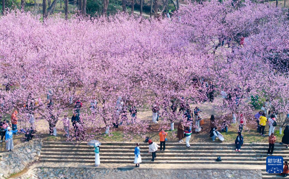 3月6日,游客在南京中山植物園賞櫻游玩(無人機(jī)照片)。