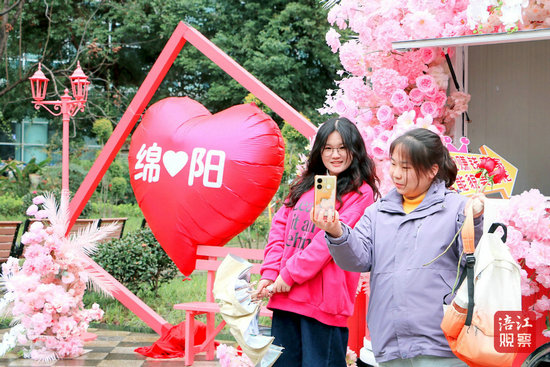 打卡車通體繪制3D立體花墻,后視鏡上垂落的流蘇綴滿鈴蘭花朵。這輛由綿陽市商務(wù)局打造的“她與綿陽有個約惠”快閃車,每到一處都會引發(fā)圍觀。“我們特意在車身周圍設(shè)計了打卡區(qū),每位女性經(jīng)過時都能留下嵌在花海中的紀念照片。”活動相關(guān)負責(zé)人介紹。
