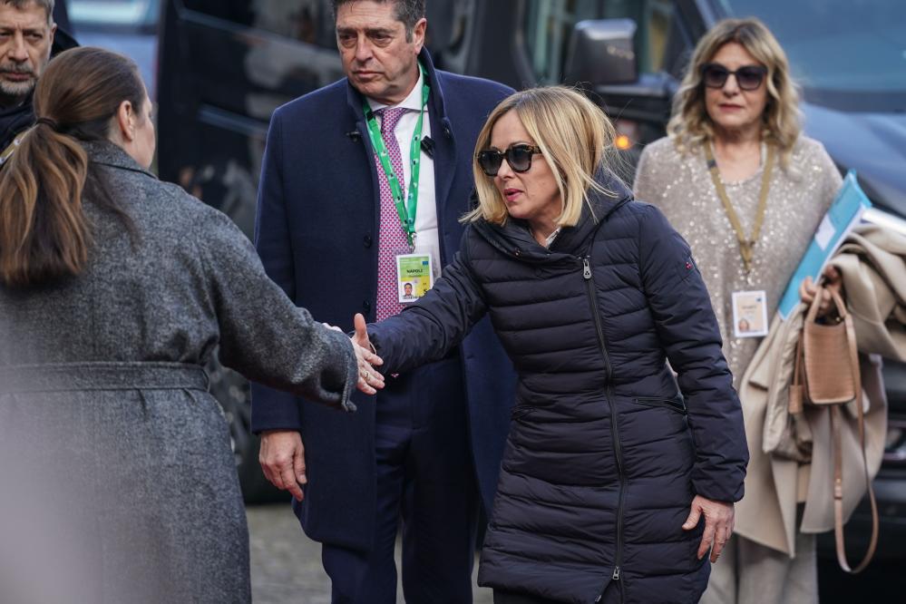 2025年2月3日,在比利時首都布魯塞爾,意大利總理梅洛尼抵達歐盟峰會會場。新華社記者彭子洋攝